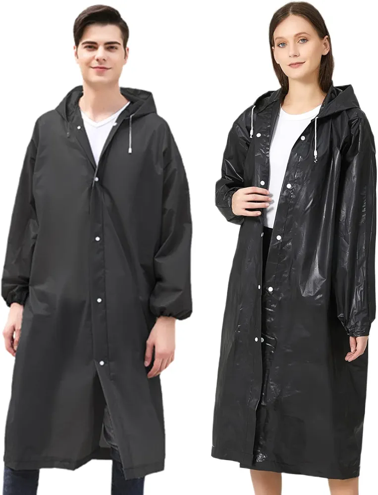 Poncho de pluie long en EVA transparent, léger, imperméable et résistant, offrant une protection complète contre la pluie lors de vos déplacements.